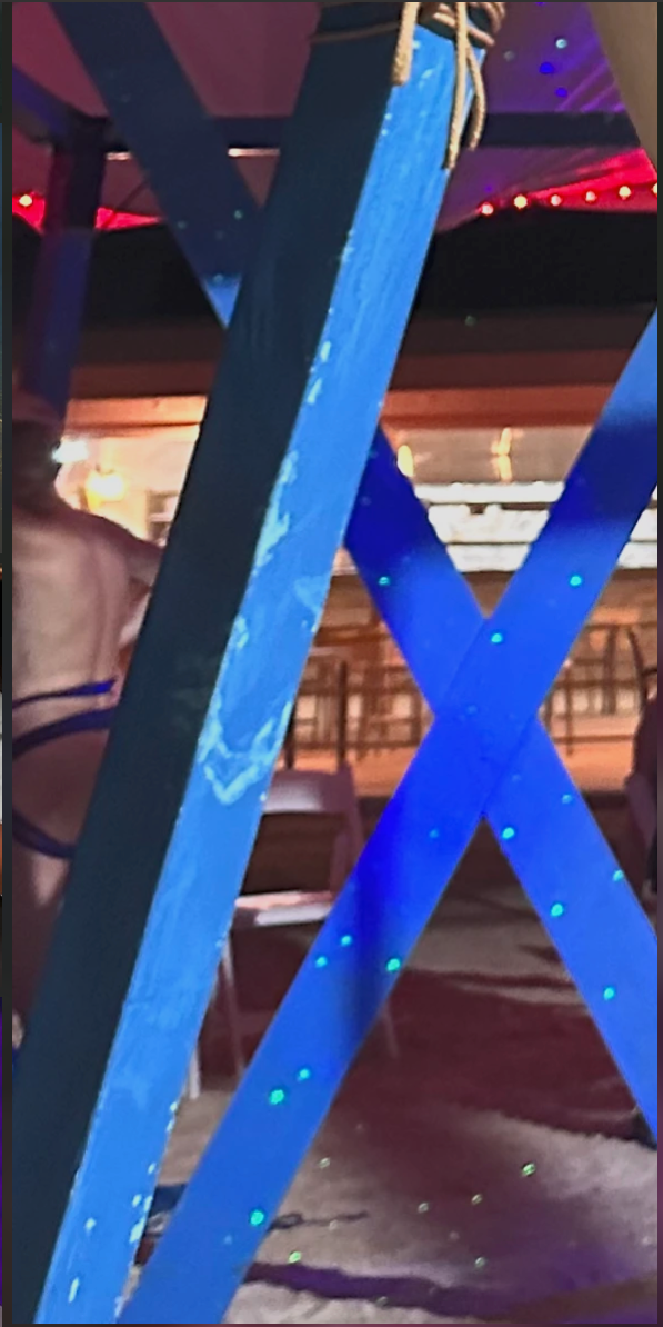 The parties will be happening every night in our tent, stocked full with BDSM furniture. The tent is also generally available during the day when not in use for workshops as well as during our evening sunset shenanigans. Attendees can play, socialize, or just watch! You can even use our PA to play your own playlist. After the party, many attendees head to the nude pool giant hot tub for late night dining, drinks, and naked, sexy fun.